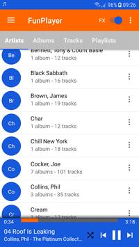 The FunPlayer works with both files stored locally on your device and web radio stations. This music player allows you to search for your favorite web radio station and store them in a list of your preferred radio stations.