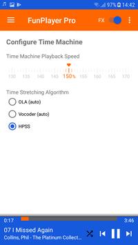 As an additional feature this music player app also comes with a time-stretching engine to increase or decrease the playback speed by up to a factor of two. This means you can adjust the playback speed of any kind of music signal without changing the pitch. You can choose from different time stretching algorithms.