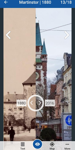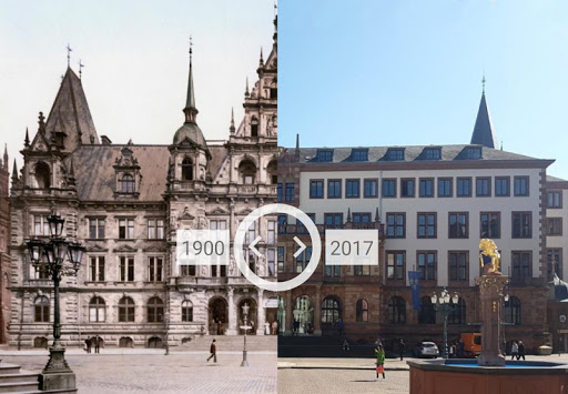 - ابدأ رحلة افتراضية عبر الزمن من أريكة الخاص بك. بالنسبة للعديد من الأماكن، هناك مراهقون صورة تفاعلية بين الصور التاريخية والصور الحالية مع زوايا متطابقة.