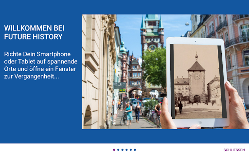 مرحبا بكم في تاريخ المستقبل. أشر هاتفك الذكي أو الجهاز اللوحي في موقع مثير للاهتمام وألقي نظرة على الماضي من خلال عرضك.