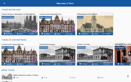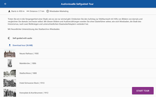- ابدأ جولة المشي الخاصة بك، اختر مكانا على الخريطة، وبدء الملاحة والغوص في التاريخ.