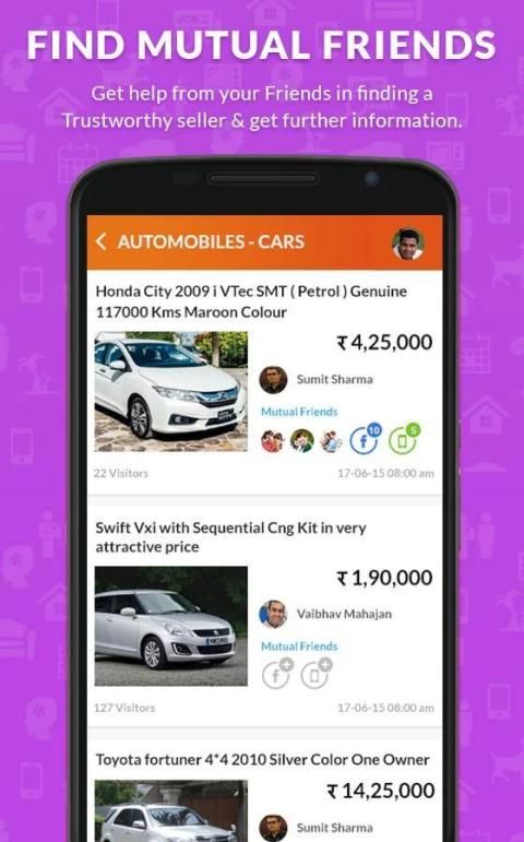 Fxchng is a free online classified platform where buyers/sellers can buy & sell different products with the help of their friends. The platform is smart/intelligent enough to find common/Mutual friends between buyer and seller. A prospective buyer will get to know if he has any common friends with the seller. Buyer can also ask the common friends’ pool to get recommended / introduced to the seller. This makes the deal way more trustworthy and easier to crack – while making new friends along the way.