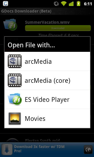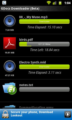GDrive Downloader allows you to easily download large files from google Drive faster than any other app. You can now access all your large files: movies, zip files iso, etc on the go Powered by Turbo Downloader enginegt; Download all files with extensions unconverted files.gt; Download acceleration large files. gt; Powered by Turbo Downloader engine see other apps.gt; This software is provided ASIS and comes with NO WARRANTIES or guarantees. Author assumes NO RESPONSIBILITY whatsoever including data loss or network usage.GDocs Downloader is in beta stage please leave your comments and suggestions in android Markettags GDocs, GDrive, Download, large, fast, faster, easy, turbo
