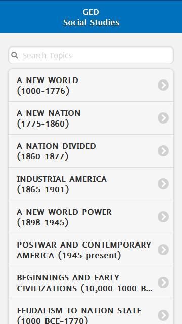 GED الدراسات الاجتماعية التطبيقات الميزات: