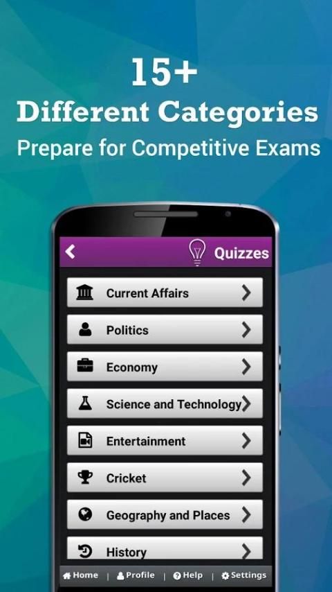 تتكون التطبيق الآلاف من أسئلة الاختيار من متعدد على أساس منهج الامتحان التنافسي المختلفة التي يميل نحو موضوعات مثل التاريخ، والدستور الهندي، والشخصيات الشهيرة والعلوم والتكنولوجيا والطب والبحوث والابتكارات والاكتشافات، أدب، علوم الحياة، الفنون، الجوائز و المكافآت والكتب والمؤلفين، والدفاع والاقتصاد والأفلام والموسيقى والسياسة والرياضة والجغرافيا في اللغة ثنائية اللغة أي الهندية والإنجليزية. هذا هو أفضل وسيلة للتأقلم كنت ضد ضغط الامتحانات وتعزيز الثقة بك. وفيما يلي السمات الأساسية للGK مسابقة التطبيق: