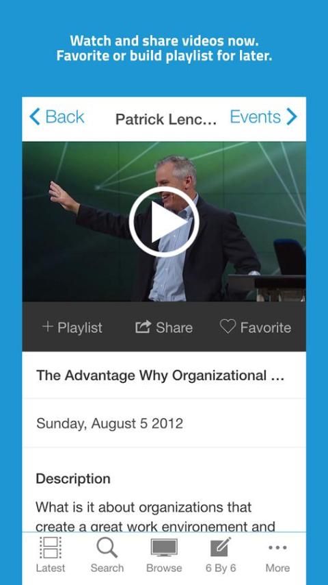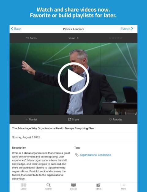 Watch and share leadership videos or bookmark and save video playlists for later
