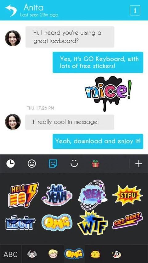 الخطوة 2. يمكنك العثور على ملصقات على لوحة رموز تعبيرية على لوحة المفاتيح GO.