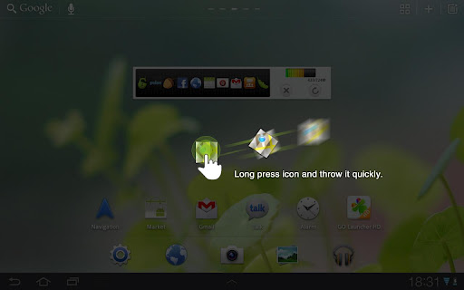 GO Launcher HD is the exclusive tablet version of GO Launcher EX on Android platform. It brings you with the fascinating interface, practical utilities, as well as extremely personalized and smooth operating experience.Ready for a brand new operating experience on Android tablet Platform? Try it outFeatures:Support dragging operation on dock barAdd Delete screensSelfdefine folders to categorize appscheck running apps and clear all Brand new adding interfaceTips:1. Not able to install GO Launcher HD?GO Launcher HD is available for tablet devices with Android 2.2 or above. 2. How to add icons and widgets to home screen?Long press home screen or click Add icon on action bar to enter Add to screen interface. You can add app icons, shortcut folder, widget to home screen. 3. How to change wallpaper?Long press home screen or click Add icon on action bar to enter Add to screen interface, and click Wallpaper tab and select wallpaper you want. 4. How to create app folder? You can create folders in two ways. First, click New Folder icon on action bar. Second, long press an icon to drag and drop it with the other one to build a new folder.Owned by and Visit 3G.cn Through Your Mobile. Copyright 20042011 All Rights Reserved.