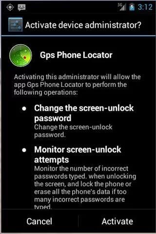 2.For GPS هاتف محدد أو الهاتف GPS محدد الابتدائية، بدء تشغيل التطبيق. يجب أن تشاهد الشاشة المسمى "مسؤول جهاز تنشيط". انقر فوق "تنشيط". وهذا سوف يسمح هذا التطبيق لقفل الهاتف عن بعد.