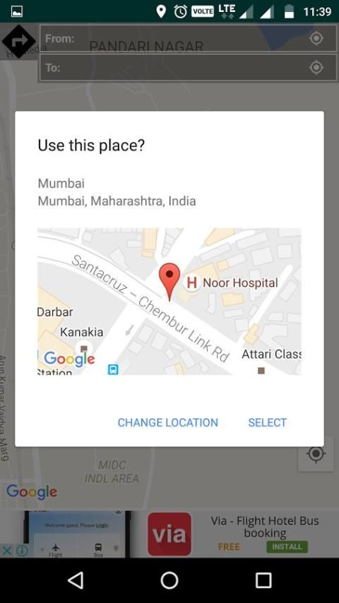 - يمكنك تحديد مصدر أو موقع الوجهة على الموقع الحالي فقط عن طريق النقر على رمز البوصلة