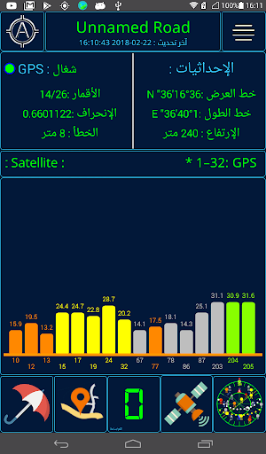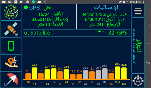 2 - أعمدة بيانية لقوة إشارة الأقمار الصناعية.