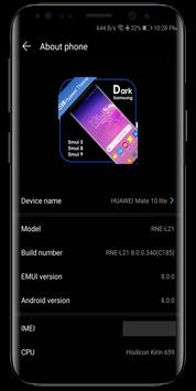 A very beautiful Premium Dark Galaxy S9 Samsung Theme for Huawei having Emui versions 3/4/5/8/9
