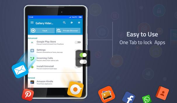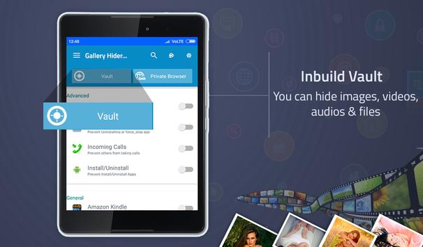 Gallery Lock is a complete privacy solution to hide image, videos, do private browsing, download videos in hidden folder.