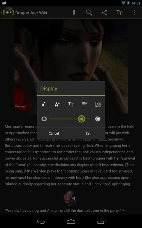 أدوات -System: يسمح التطبيق لقاتمة أو سطع شاشة الجهاز الخاص بك (خيارات العرض).