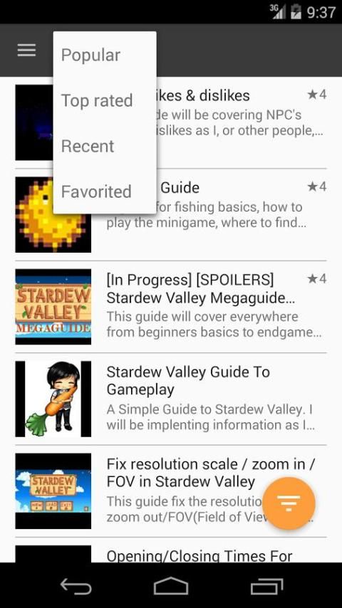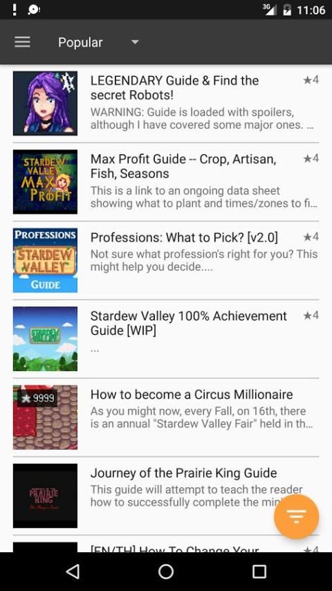 التطبيقات GameQ تسمح لك أن ترى معظم الأدلة الأخيرة والشعبية حول الألعاب المفضلة لديك، وتصفية والبحث من خلالهم. ويكرس هذا التطبيق لعبة كمبيوتر Stardew الوادي. قد تجد تطبيقات GameQ لعبة الكمبيوتر الأخرى، مجرد مراجعة القسم "مزيد من التطبيقات من هذا المطور".