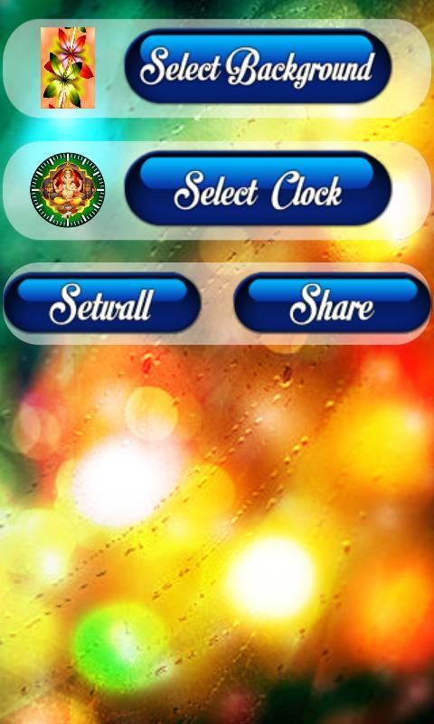 Ganesh Live Clock Wall Paper comes with a background image which you can select and a Live Clock which you can select from the menu.