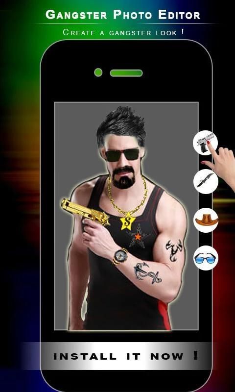 سوف العصابات محرر الصور تجعل صورتك كما العصابات باستخدام الدعائم مختلفة مثل الرجال شارب على الصورة، لحية، نظارات واقية، وسلسلة ومختلف صور آثار أخرى. هذا المحرر العصابات الصورة يمكن أن تستخدم لجعل حياتك الموافقة المسبقة عن علم تعريف جديد أو يمكن أن تستخدم لجعل صانع العصابات DP. سوف يكون محبوبا هذا التطبيق من قبل جميع الصور والصور الشخصية للعشاق.