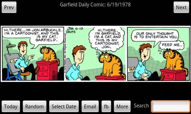 إطعام الخاص غارفيلد الحاجة مع جرعة يومية من الهزلية الكلاسيكية! صحيفة هزلية غارفيلد الروبوت التطبيق يسمح لك بمشاهدة كل قطاع غارفيلد كوميدي يوميا على الإطلاق - وهذا يزيد على 12300 الشرائط! هذا التطبيق ممتاز وقد طن من الميزات التي تسمح لك للبحث وتبادل أشرطة هزلية الخاص بك المفضلة.