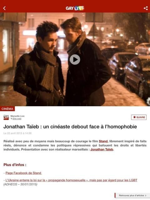• 50 وسائل الإعلام العامة التي تتعامل مع LGBT الأخبار، بما في ذلك: iTele، BFMTV، أوروبا 1، لو نوفيل أوبسرفاتور، لوموند، Rue89، L'Express أو التحرير، هافينغتون بوست، حجر غرب فرنسا، لو دوفين، فرنسا 3 المناطق