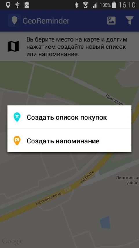 Georeminder تسمح لك لخلق قوائم التسوق والتذكير، والتي تبلغ التطبيق عندما كنت في مكان قريب.