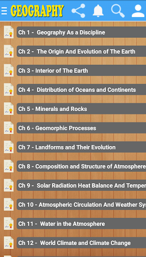 يتم توفير الإجابات بطريقة خطوة بخطوة تتعلقفصول مختلفة من الجغرافيا فئة 11th.يحتوي هذا التطبيق على واجهة مستخدم بسيطة للغاية.عندما تحتاج إلى أي معلومات حول الجغرافيا ، فأنت مجرد نقرة.