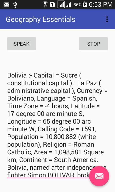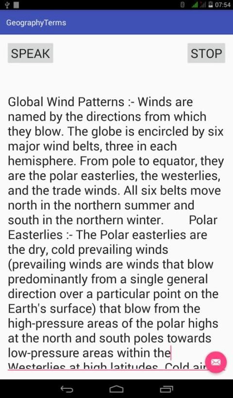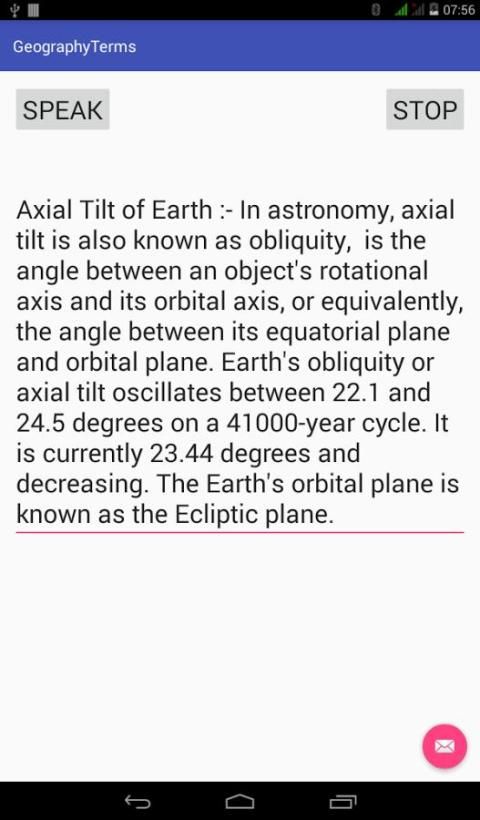 هذا البرنامج هو أداة لجعل الجغرافيا فهم بأسلوب واضح. انها تتعامل مع جميع السبل تقريبا من المفاهيم الجغرافية. ويقدم بيانات وافرة يمكن الاعتماد عليها في القارات، للبلدان، المدن والأنهار والمحيطات والصحارى والجبال والمناخ والأرض والمحاصيل والنفط والمعادن والمشروبات الخ ويقدم الاستماع والقراءة لتعظيم التعلم أسهل طريقة. ويهدف البرنامج لجميع من 8 إلى الدكتوراه. يتكون هذا التطبيق لمعظم أساسيات الجغرافيا التي هي أساسيات وبالضرورة الحاجة إلى الجغرافيا.