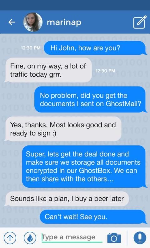 GhostApp يأتي مع المدمج في دردشة والبريد الإلكتروني وبسلاسة المصاحبة عبر جميع الأجهزة الخاصة بك، ويمكن استخدامها على حد سواء الهواتف الذكية، وأجهزة الكمبيوتر المكتبية، وأقراص الخ