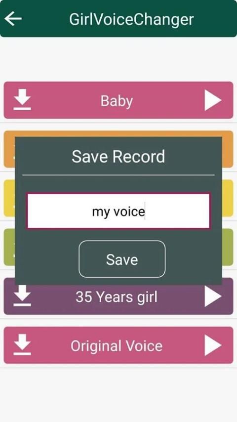 وقد جعل هذا التطبيق مبدل صوت فريد خصيصا للتسلية. يمكنك بسهولة تغيير صوتك إلى صوت طفلة، فتاة صوت شاب، فتاة بصوت مضحك وصوت امرأة القديم.