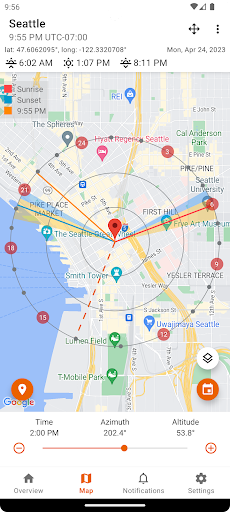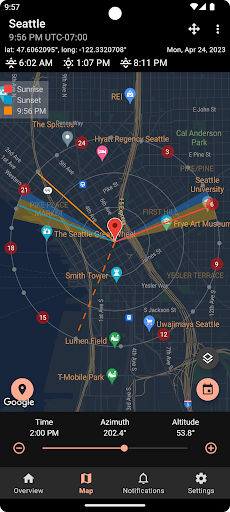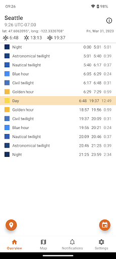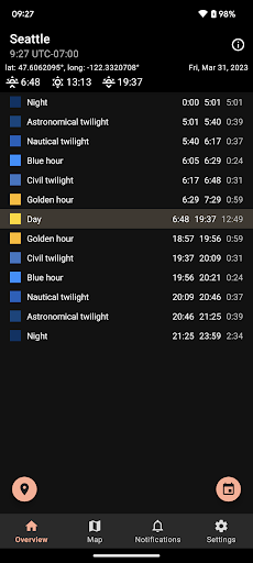 - Set up notifications for upcoming sunrises, sunsets or golden hours