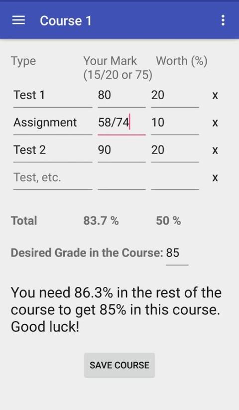 الحصول على الحاسبة العلمية وسترى كم هو سهل لتتبع العلامات الخاصة بك، ولم تحصل على أقل من الدرجة المرغوبة مرة أخرى!
