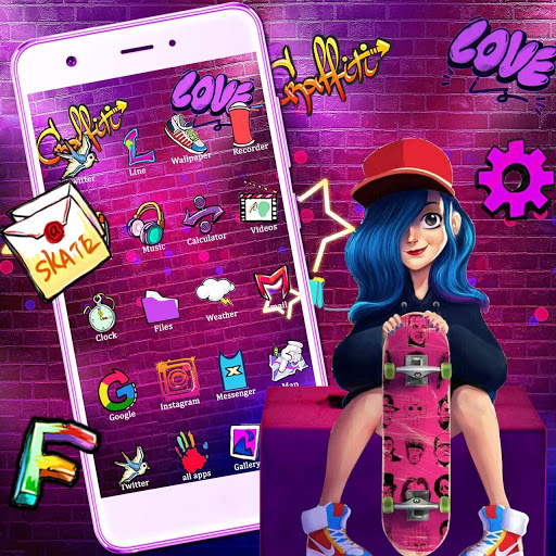is Wallpaper changer🎀 Icon changer🎀 Able to personalize whole screen of your android phone with customGraffiti, Skater, Girl launcher 2019💖