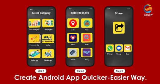 Grobiz App Maker يمكن أن يكون بمثابة أداة رائعة لإنشاء تطبيقك للعمل عن طريق التحديد من مجموعة واسعة من الفئات المتوفرة عن طريق التبديل فقط إلى اليمين أو اليمين إلى اليسار أو يمكنك القيام به التطبيق عن طريق وضع طلب التخصيص في التطبيق الحالي أو يمكنك أن ترسل لنا شرطا جديدا حسب احتياجات عملك من خلال ملء نموذج الاستفسار، من خلال الدردشة، أو الاتصال مباشرة إلى دعم عملائنا مباشرة.