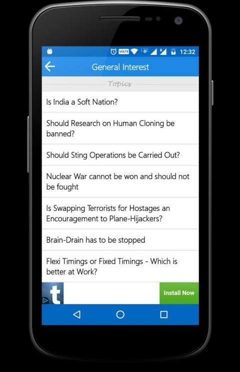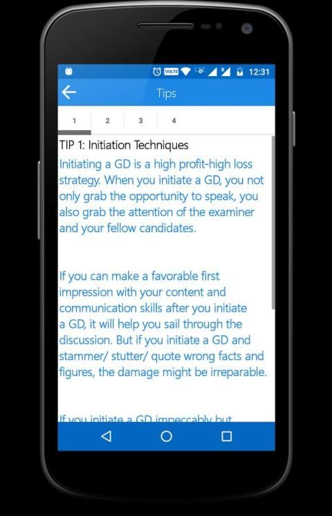 مناقشات المجموعات (GD) هي الجزء الأكثر أهمية وجولة لأي معايير الاختيار في المنظمات. هناك عدة فئات من التي المرشحين الحصول على المواضيع في جولة GD الخاصة بهم. معظم المرشحين لا يتحدثون يرجع ذلك إلى نقص في الأفكار حول الموضوع. حتى هنا هو تطبيق لحل هذه المشكلة. هذا التطبيق سوف يساعد الناس في مختلف المقابلات. هذا التطبيق هو أيضا جيدة لنشر أفكارك على المواضيع. هناك بعض النقاط التي يجب أن تمارس قبل مواجهة مجموعة مناقشة أي مجموعة المناقشة نصائح. واضاف لدينا الكثير من النصائح.