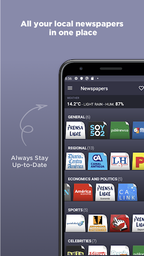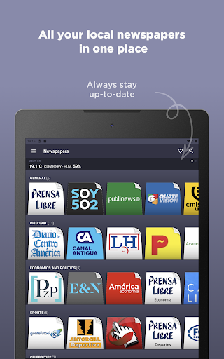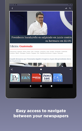 Guatemalan Newspapers is an application that groups all news of the most important newspapers and magazines of Guatemala. With this application you can have in one place, all the information you want without browse individual websites of each newspaper or magazine.