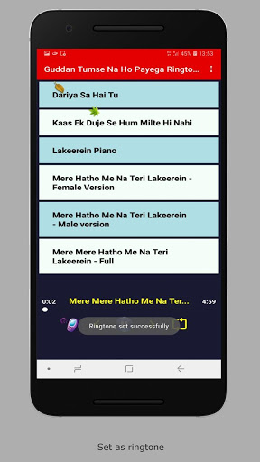Can set song as mobile ringtone right from the app.