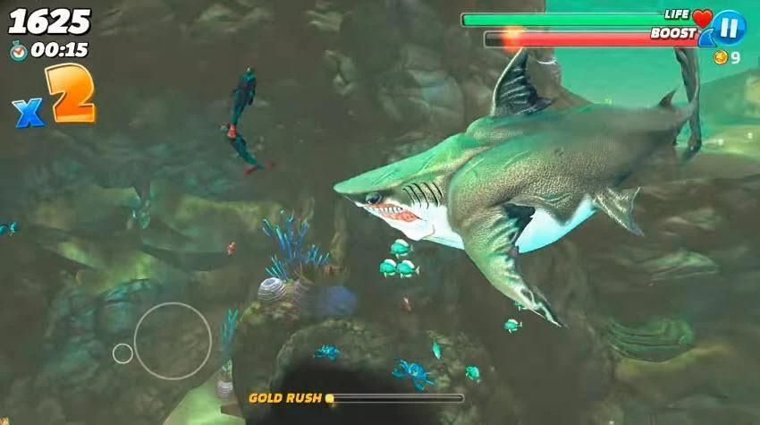 يصل مستوى القرش وتجهيز jawsome الأدوات لدغة أكثر صعوبة، والسباحة بشكل أسرع وتنمو حتى جوعا! لا القرش مليء بدون سماعات الرأس، ومظلة وJetpack لفرياكين '!