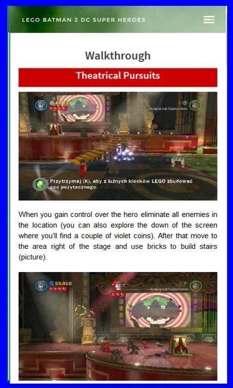 Guide for LEGO Batman 2: DC Super Heroes you will find everything what is essential to complete the game on 100 percent.
