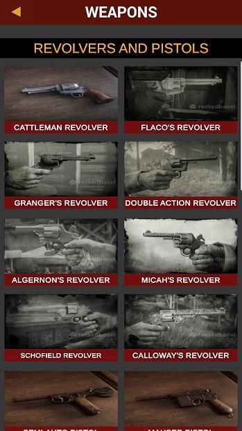 There are more than 50 weapons on RDR2. Find out all detailed stats and information of weapons (price, damage, range, accuracy ...).