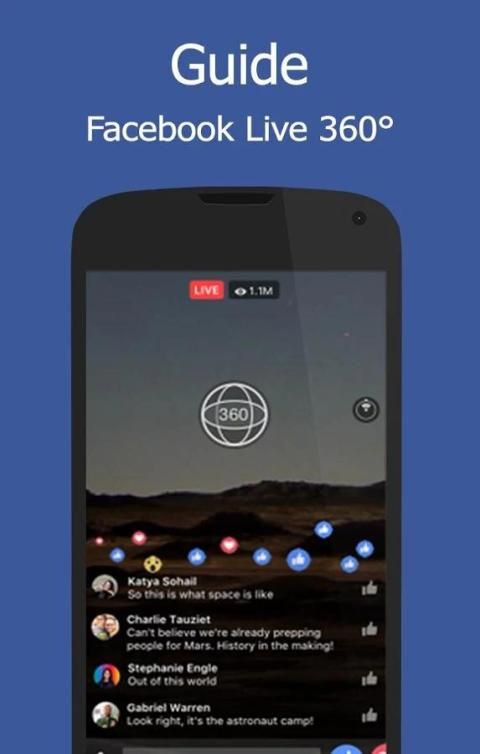 الآن هذه الميزة من الفيسبوك ليست متاحة بعد للمستخدم العام، انها تستخدم فقط من قبل ناشيونال جيوغرافيك لحية 360 درجة من مؤسسة بحوث الصحراء المريخ في ولاية يوتا.