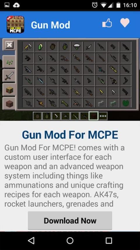 Gun Mod For MCPE! for minecraft weapon gun mod come with weapons have different strengths, some are one shot kill weapons, some have more accuracy than power. In this mod's current state, it adds 11 guns, the P90 (SMG), the MP7 (smg), the Galil (Assault Rifle), ScarH (Assault Rifle), the M14 DMR (semi-auto sniper), the FRF2 (bolt action sniper rifle), the Glock 17 (pistol), the Minimi (LMG), minecraft gun mod M60 (LMG), the M1014 (semi automatic shotgun) and the Remington M47 (shotgun). Gun Mod For MCPE! have are various items added for you to be able to craft these guns aswell. This weapon mod added more tons of weapons are included in the mod. Everything from handguns to massive rocket launchers and handheld throwable items like grenades and molotovs. You can aim down the sights for an even cooler look and better aim. More to come in the future!