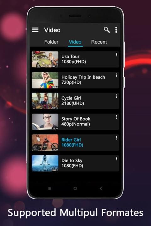 مشغل فيديو يمكن يدعم جميع صيغ ملفات الفيديو بما في ذلك ملف MP4، WMV الملف، ملف RMVB، MKV ملف، ملف 3GP، M4V ملف، ملف MOV، TS ملف، ملف MPG، FLV الملفات الخ