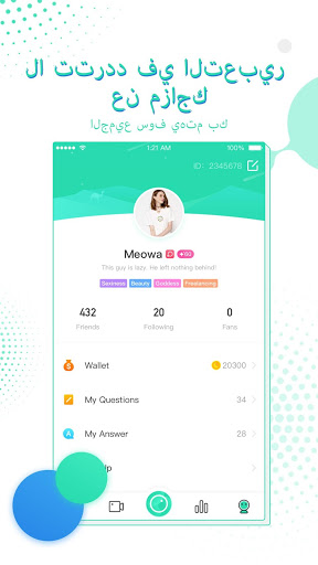 الملل وستجعلها مثيرة للاهتمام من خلال مساعدتك في الدردشة والتعرف على أصدقاء جدد من جميع أنحاء العالم. في أي وقت وفي أي مكان ، يمكنك التواصل مع أشخاص آخرين ، وهي طريقة جيدة للتواصل مع أشخاص مثقفين مختلفين والتعرف على أفكارهم حول الحياة والبلدان والعادات والهوايات. دردش مع الناس و اجعل وقتك قيم. سوف تكسب بعض المهارات والمعرفة من بعضكم البعض. لا تنتظر - انضم إلى هلا ، وبث حياتك ، واكسب العديد من المعجبين ، واحصل على الهدايا ، وكسب المال وكن محبوب بسهولة.