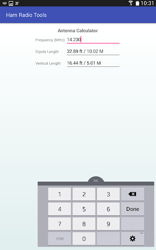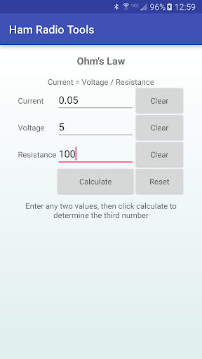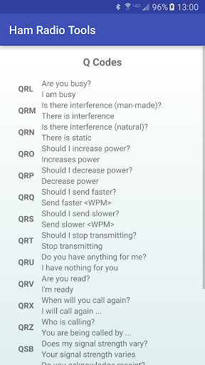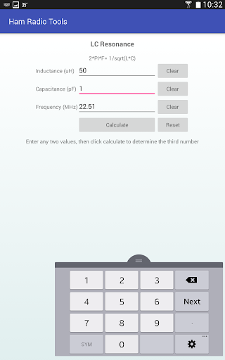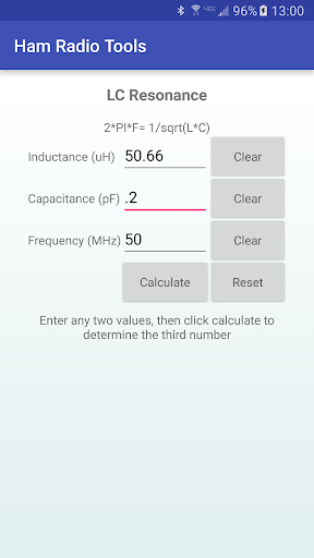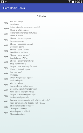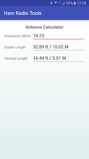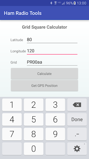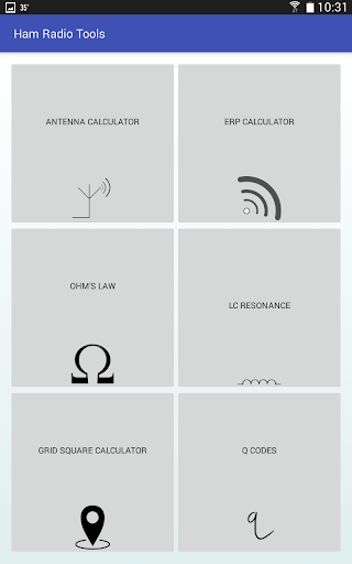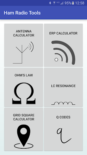 Ham Radio Tools also includes calculators for antenna length, Ohm's law, resonant frequency, grid square, and a list of common Q codes. The grid square calculator can convert an entered lat/long to grid square, or can use your GPS to find your current location and grid square.