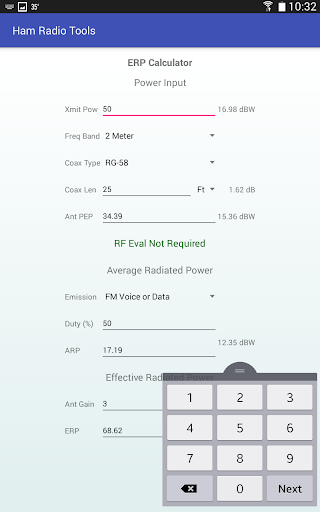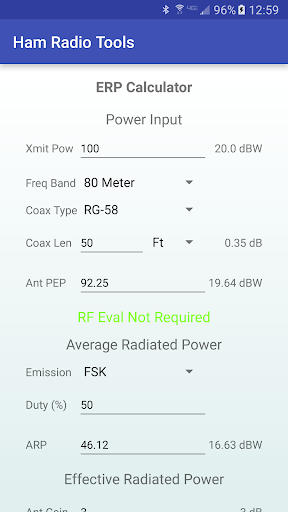 Enter a few pieces of information regarding your station setup and Ham Radio Tools can tell you your ERP and let you know if you are required by the FCC to do an RF evaluation.