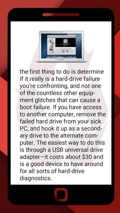 أول شيء فعله هو تحديد ما إذا كان هو حقا فشل القرص الصلب كنت مواجهة، وليس واحدا من عدد لا يحصى من الأخطاء غيرها من المعدات التي يمكن أن تسبب فشل التمهيد. إذا كان لديك الوصول إلى كمبيوتر آخر، وإزالة القرص الصلب الفاشلة من PC المرضى الخاص بك، ووصل الأمر كمحرك أقراص الثانوية للكمبيوتر بديل. أسهل طريقة للقيام بذلك هي من خلال USB حملة عالمية محول يكلف حوالي 30 $ وهو جهاز جيد أن يكون في جميع أنحاء لجميع أنواع التشخيص القرص الصلب