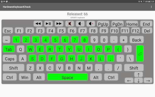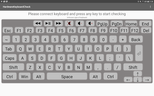 To check all buttons on your physical keyboard you need to install this app, connect your keyboard to device and check all buttons by pressing them and seen if they work on special view.