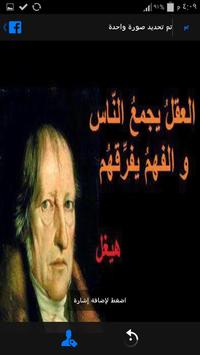 في هذا التطبيق ميزة و حيدة لا توجد بالتطبيقات الاخرى انه تستطيع مشاركة الصورة التي تعجبك من خلال الضغط على الزر الموجود في اعلى كل صورة قول الحكماء.