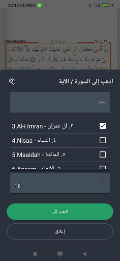 9. يُمكنك الانتقال إلى أي جزء أو سورة أو آية تريد.