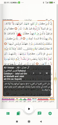 6. يُمكنك وبشكل متلازم رؤية ترجمة معاني الآية خلال تلاوتها. كما توجد عشرات ترجمات المعاني الجاهزة للتحميل (بلغات مختلفة)، كما يُمكنك متابعة تحميل الترجمات.