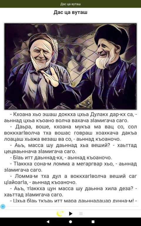 الإنغوش حكايات الشعبية لجميع الأعمار. وروى النص من قبل الفنيين ويأتي مع الرسوم التوضيحية الملونة واصفا الأحداث في كل صفحة.
